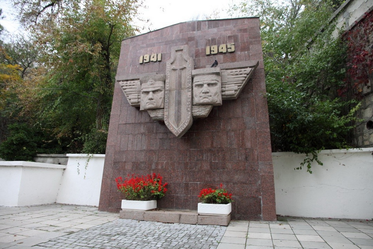Справочно: монумент «Разведчикам Черноморского флота» установлен в 1984 году; представляет собой стену высотой в пять метров, которая облицована красным гранитом. На ней высечены изображения двух разведчиков, а также щита и меча – воинской эмблемы.