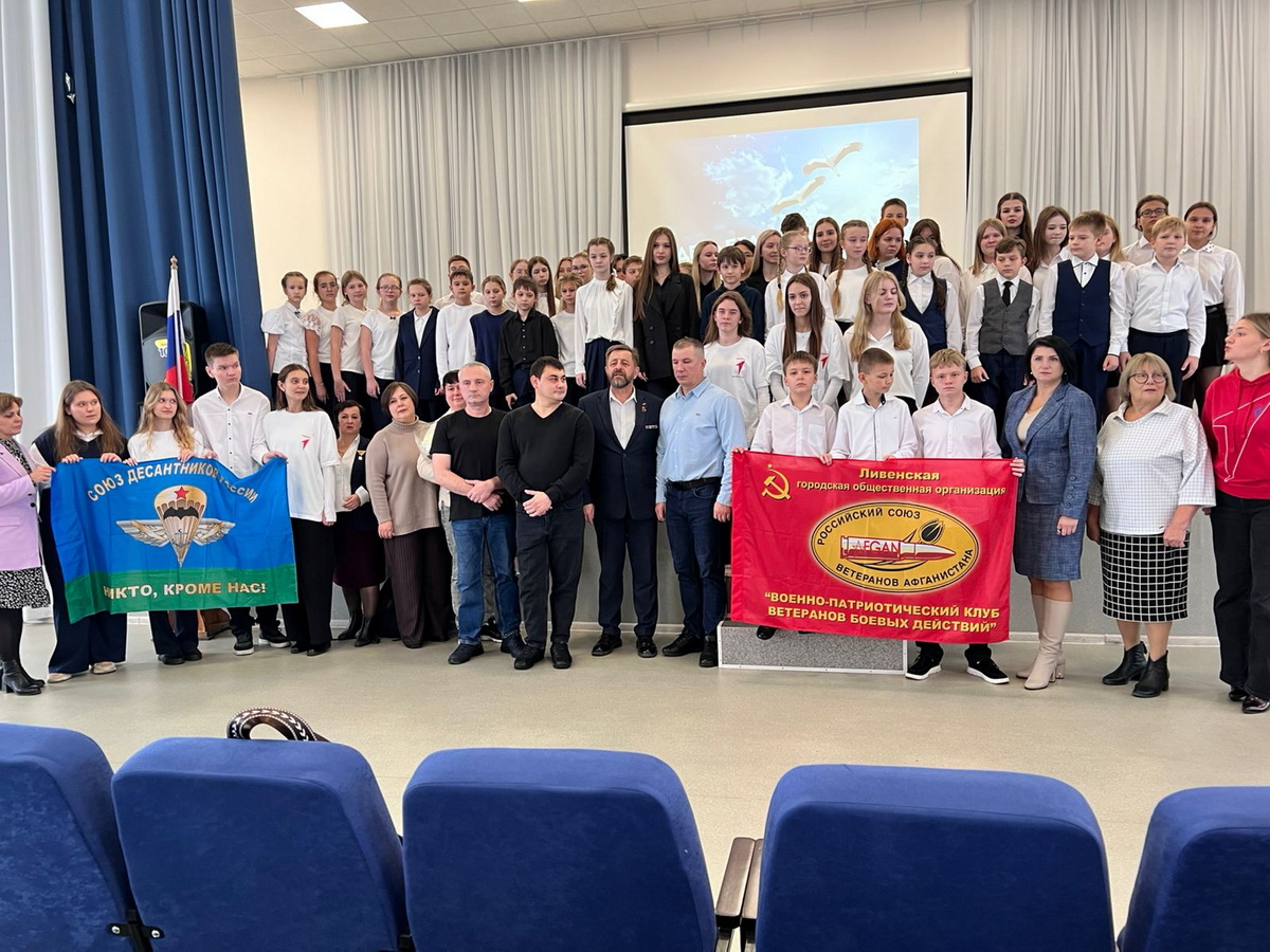В этот памятный день представители Орловской областной общественной организации «Союз десанта и специальных подразделений» Всероссийского Союза общественных объединений ветеранов десантных войск «Союз десантников России» имени Героя Советского Союза генерал – полковника Востротина В.А. и Ливенский военно-патриотический клуб ветеранов боевых действий. Провели в школе №2 акцию памяти «День белых журавлей». В мероприятии приняли участие ветеран боевых действий в Афганистане Сергей Шеламов, ветеран военного конфликта в Чечне Александр Ульянкин, участники специальной военной операции Андрей Миргородов и Сергей Ефанов. Среди почетных гостей мероприятия была мама Дмитрия Шиенкова, выпускника школы, погибшего в ходе проведения специальной военной операции.