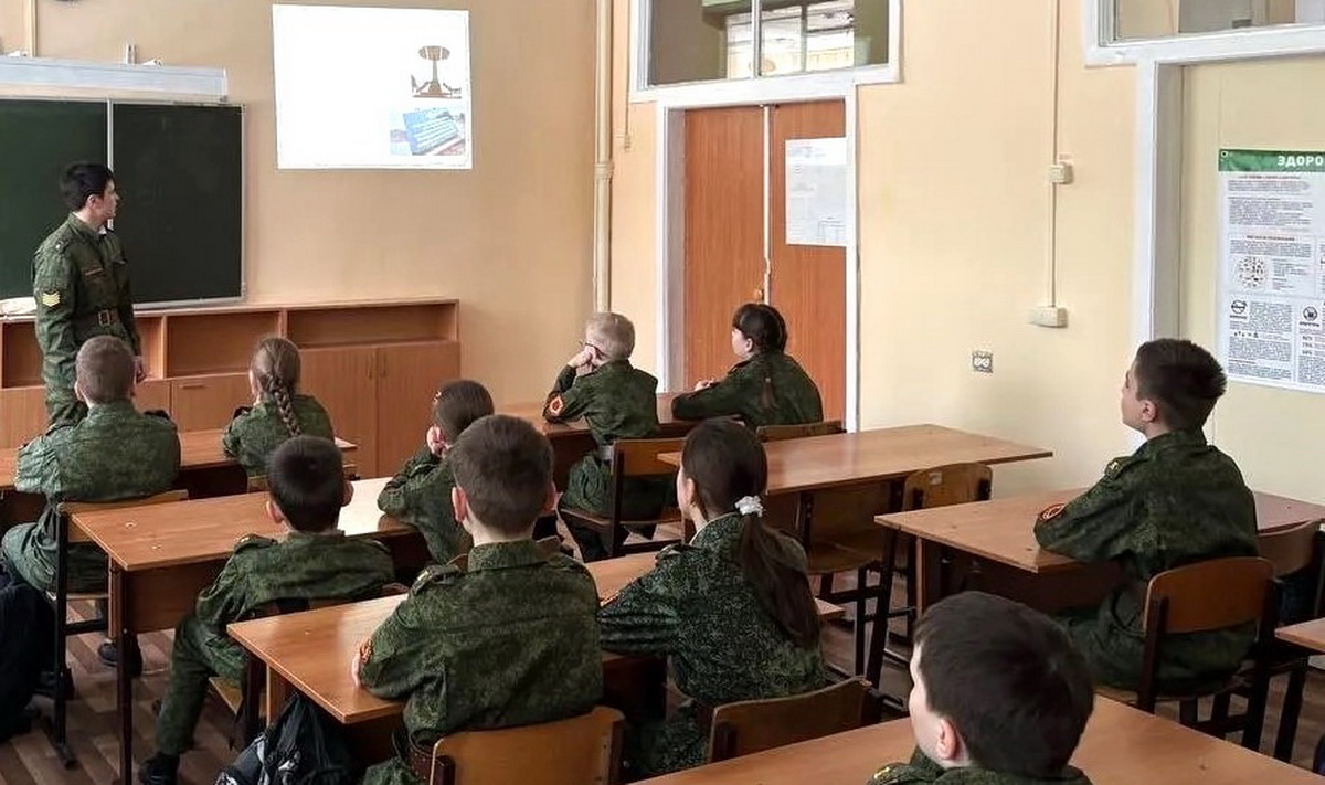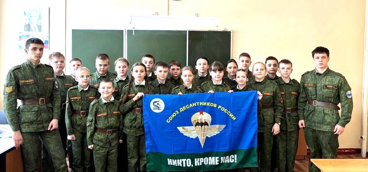 Курсанты Военно-патриотического клуба имени Героя России Сергея Костина провели урок мужества с кадетами 5-го класса школы №43 им Г. К. Жукова города воинской славы Курска посвященном воинам десантникам 6-й роты.