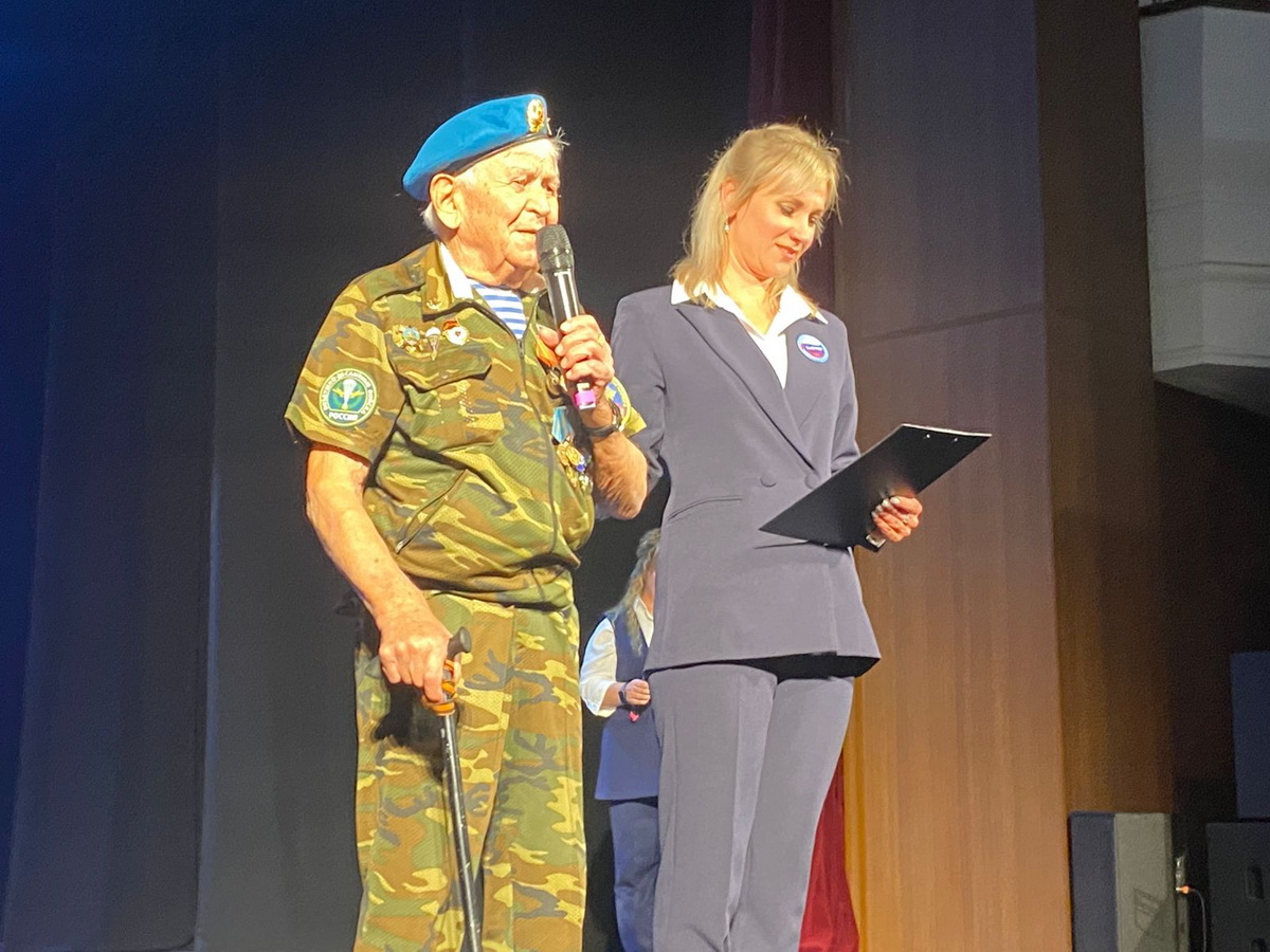 Член Совета организации 95-летний ветеран ВДВ Григорий Никифорович Бутенко поздравил преподавателей и юных Патриотов с 25-м Юбилеем и пожелал успешного обучения и творческих успехов.