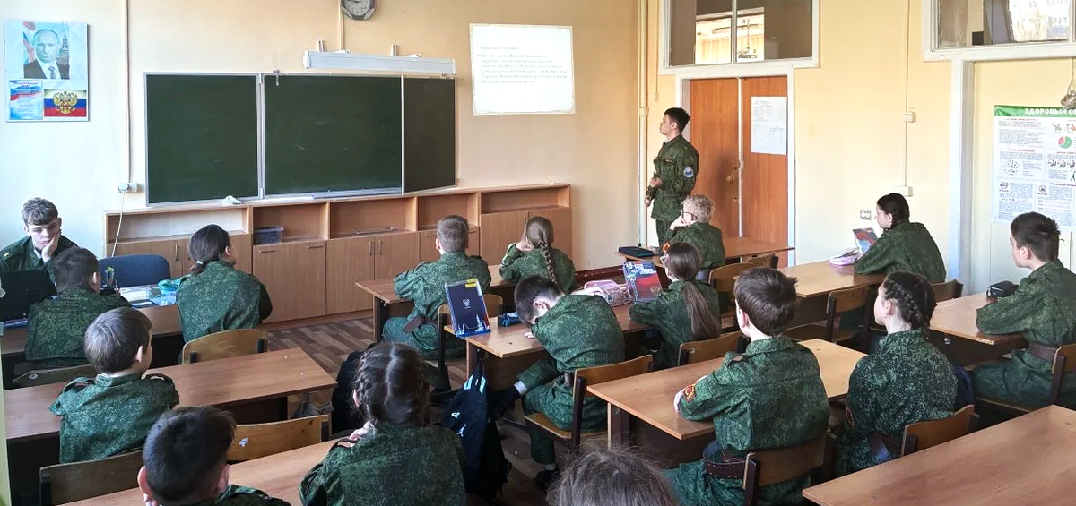 Курсанты военно-патриотического клуба «Разведбат» имени Героя России Сергея Вячеславовича Костина школы №43 имени Г.К. Жукова города Курска в очередной раз провели, среди младших кадет школы, патриотическое занятие, посвященное троим Командующим ВДВ.
