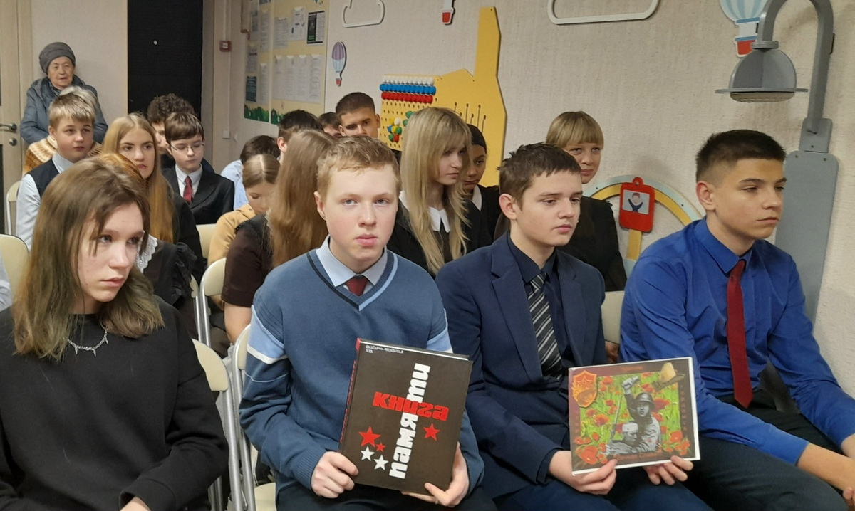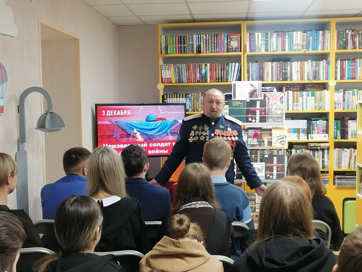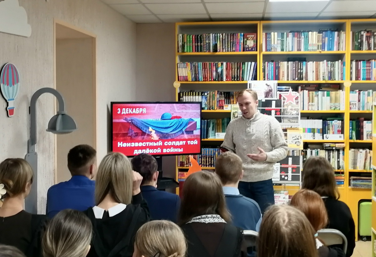 Присутствующие познакомились с историей праздника, узнали о воинской доблести и подвигах погибших российских и советских солдат, чьи имена остались неизвестными, о всероссийской Книге памяти.