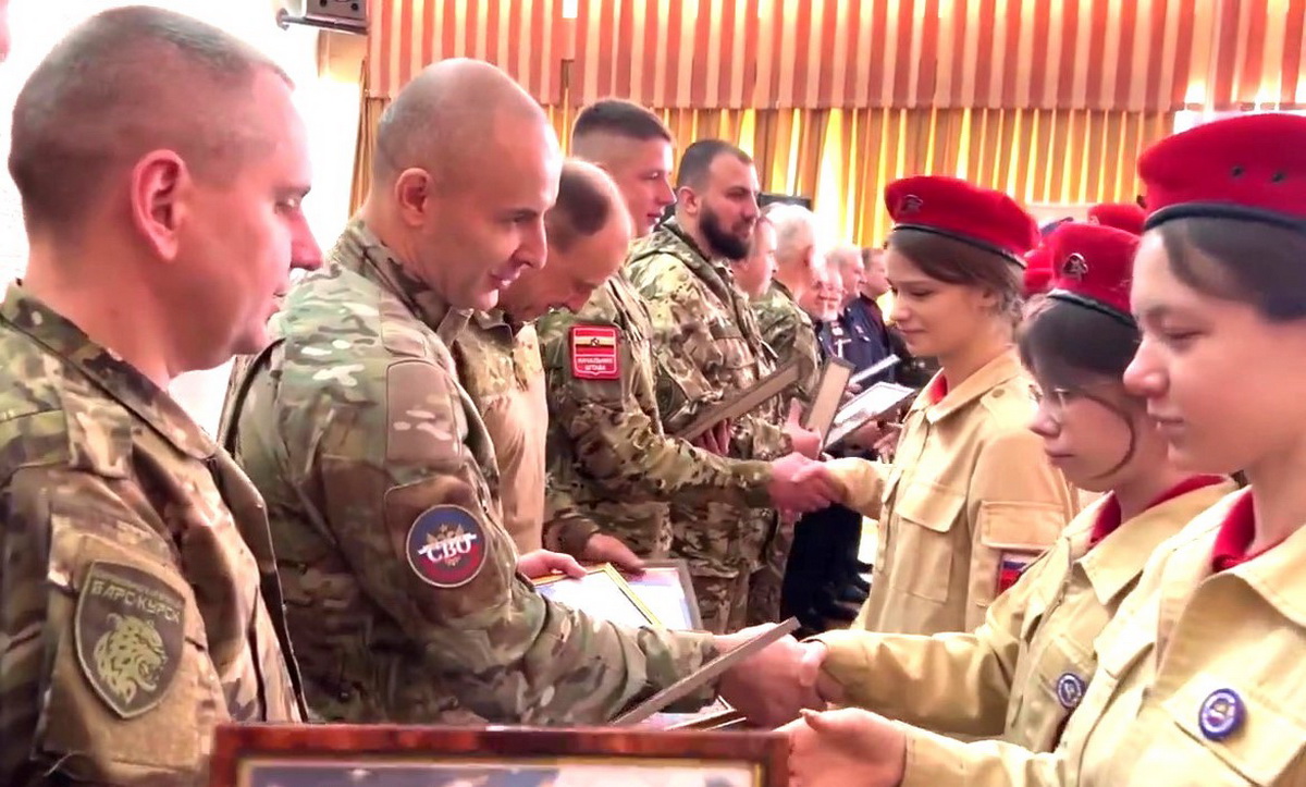 Участники СВО, представители бригады «БАРС-Курск», ветераны боевых действий собрались вместе, чтобы поговорить с ребятами о жизни, отваге и чести.