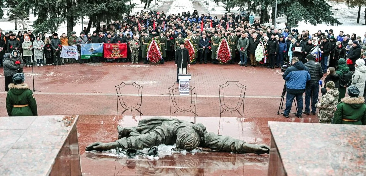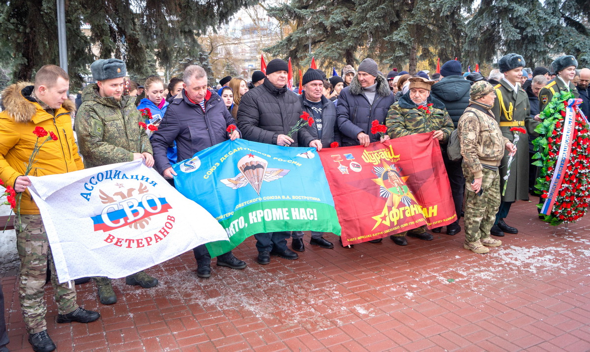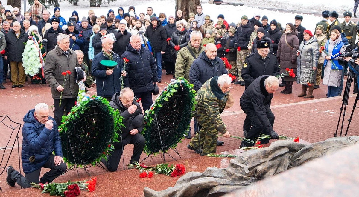 Евгений Маслов, глава города Курска: «Мы склоняем головы перед теми, кто не вернулся, и выражаем благодарность ветеранам, прошедшим через испытания локальных войн и вооружённых конфликтов за пределами страны».