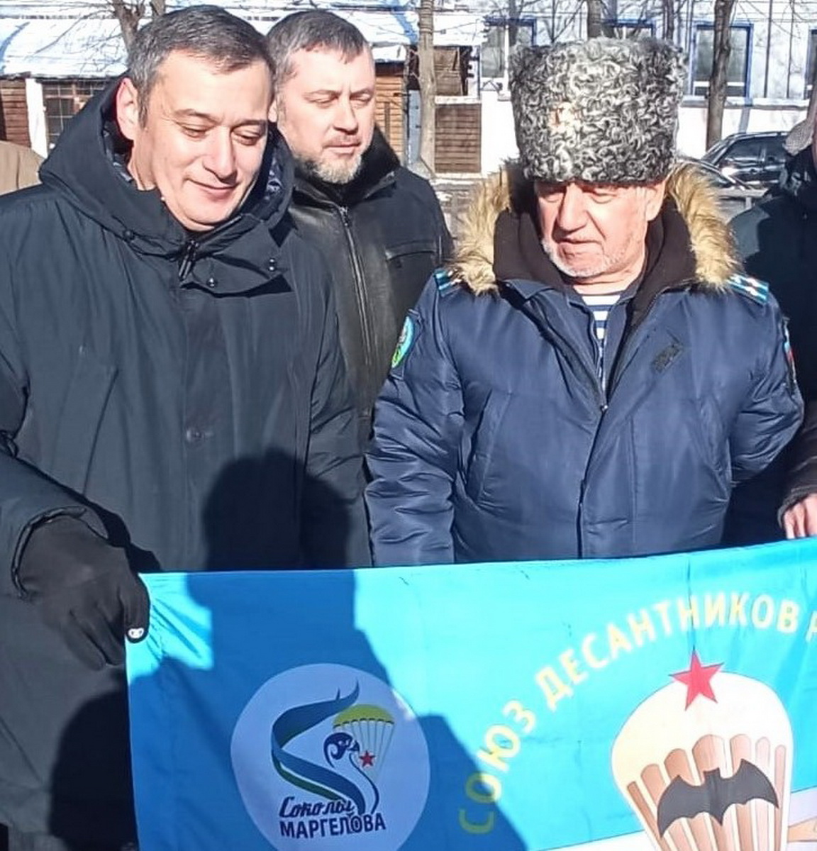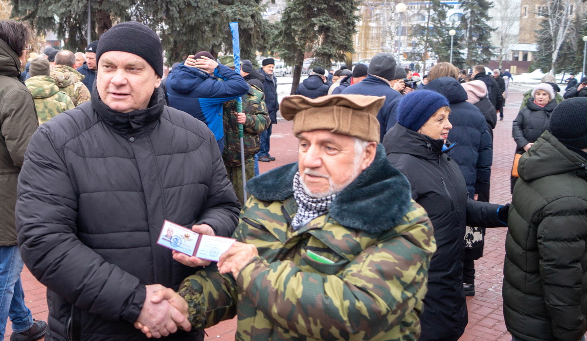 В торжественной обстановке Владимир Армашов вручил удостоверение члена «Союза десантников России» Владимиру Булгакову».