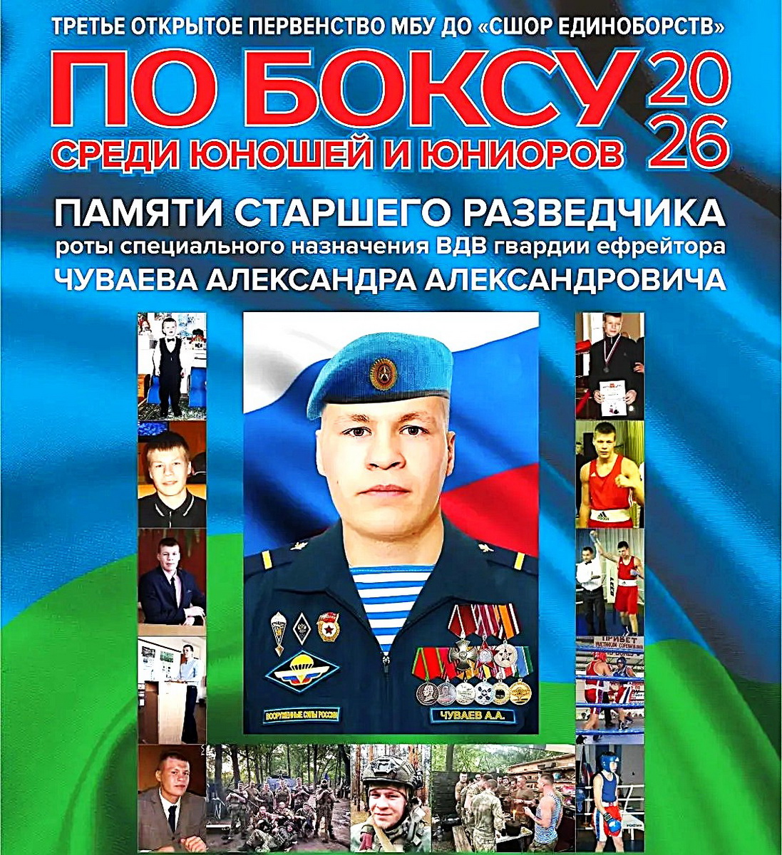 4 апреля в городе Железногорске Курской области состоялось открытие первенства МБУ ДО «СШОР Единоборств» по боксу среди юношей и юниоров памяти старшего разведчика роты специального назначения ВДВ гвардии ефрейтора Чуваева Александра Александровича, погибшего при выполнении боевой задачи в ходе специальной военной операции 15 июля 2023 года.