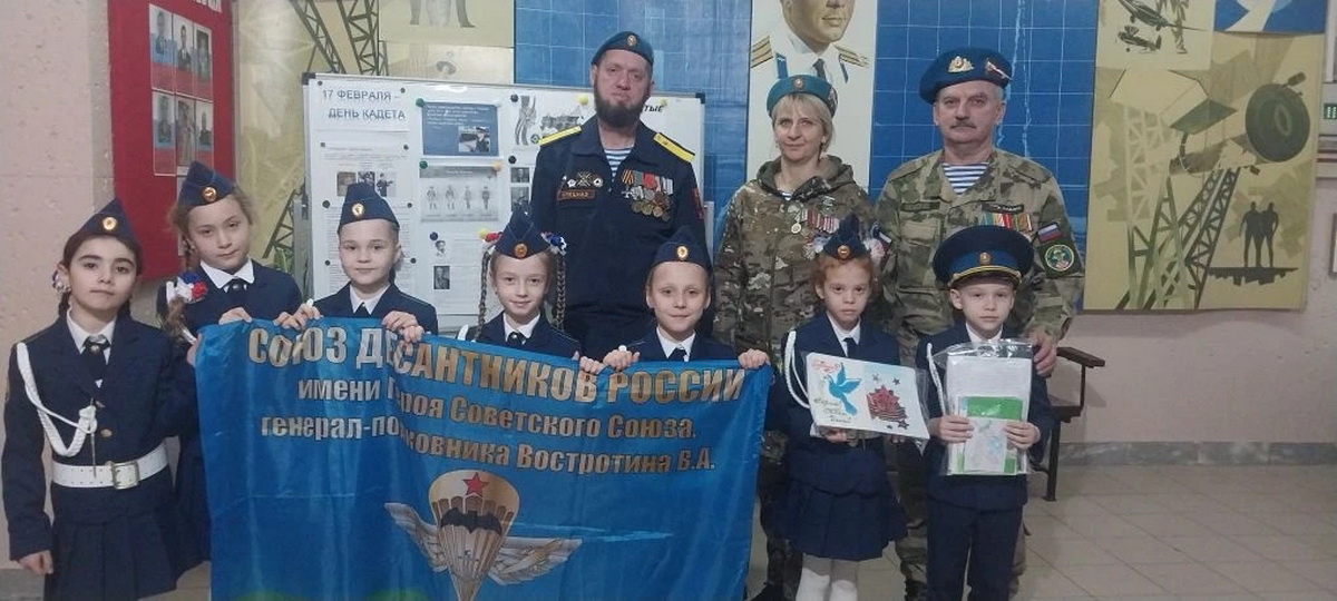 В конце встречи ученики-кадеты передали в «Союз десантников Таганрога» закупленную портативную электростанцию, подарки, письма и поздравительные открытки с наступающим Днём Защитников Отечества для доставки их нашим воинам в зону Специальной военной операции.