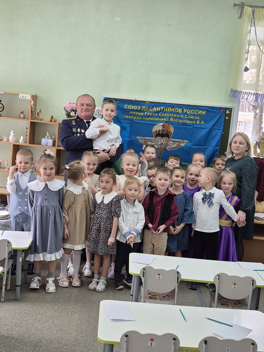 В рамках работы по патриотическому воспитанию подрастающего поколения, представитель Костромской областной общественной организации «Ветераны десантных войск» гвардии майор запаса Василий Погорилый провел встречу в детском саду № 28 города Костромы, посвященную Дню Защитника Отечества.