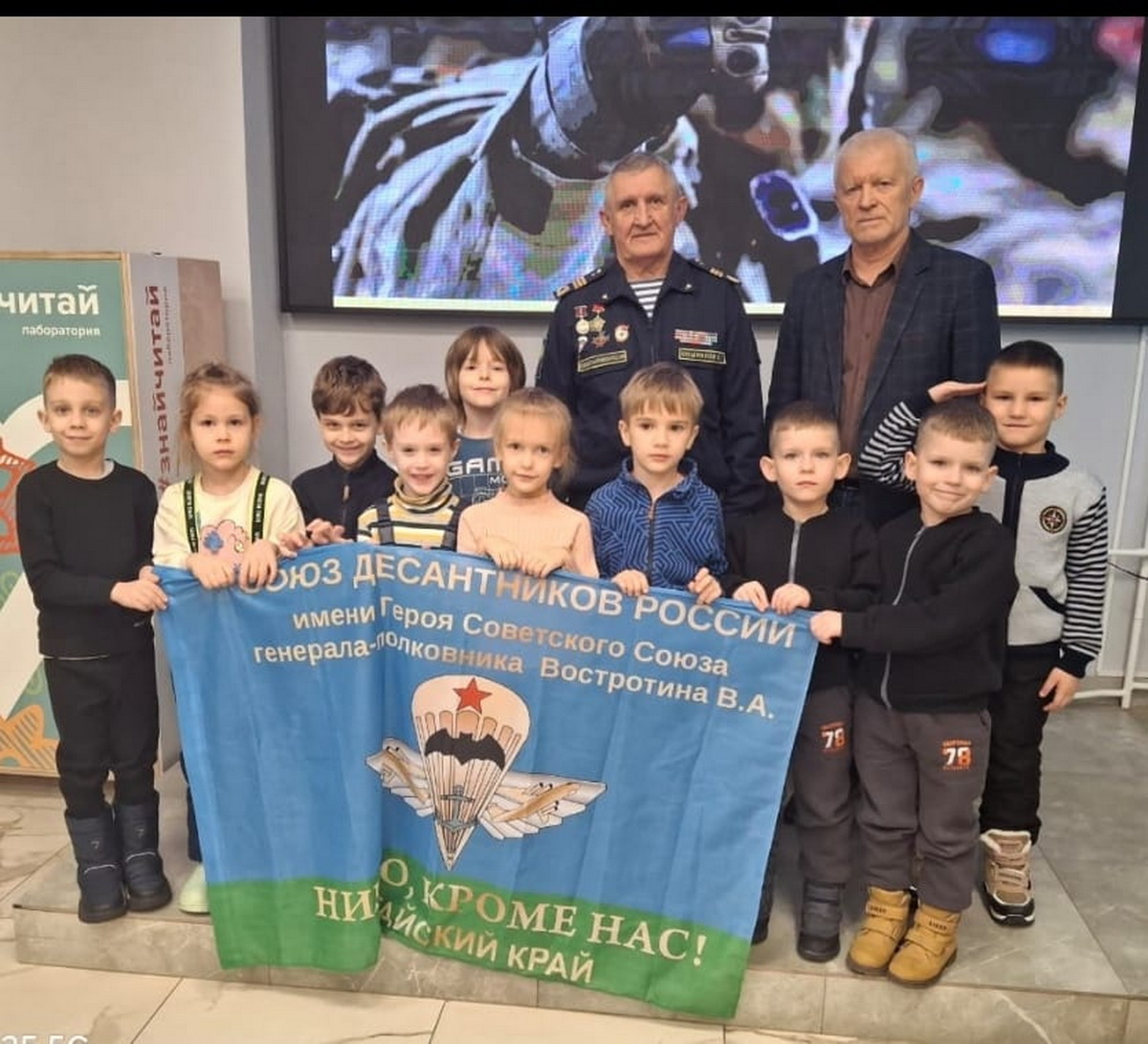 При поддержке филиала Государственного фонда «Защитники Отечества» в Алтайском крае и Союза десантников в Алтайском крае с ребятами пообщался военный запаса – сержант срочной службы в ВДВ (воин-интернационалист, отслуживший полтора года в Афганистане), ветеран СВО – председатель Правления Союза десантников России по Алтайскому краю Сергей Геннадьевич Сошников. Добавим, что он – выпускник барнаульской гимназии № 69.