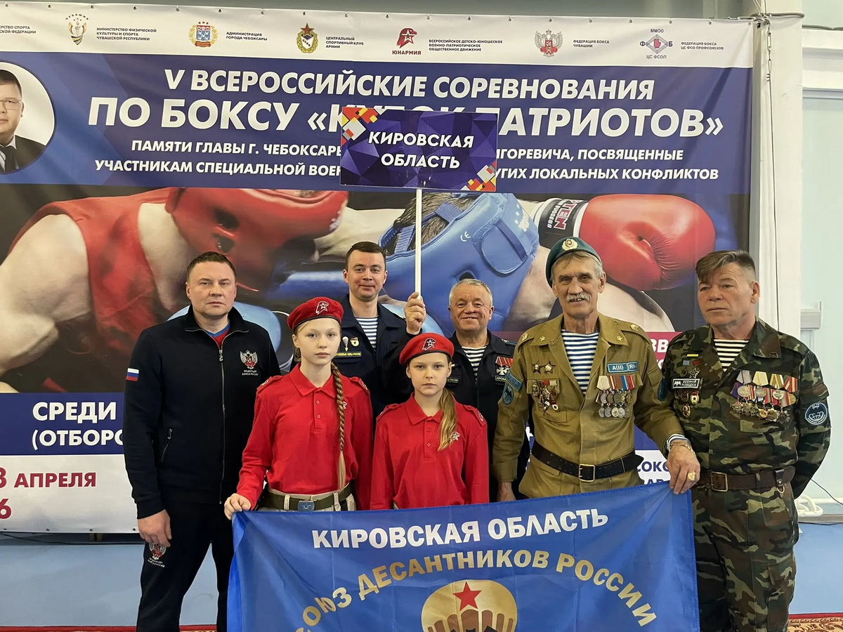 Кировская областная общественная организация «Союз десантников и ветеранов боевых действий Кировской области» по приглашению руководителя межрегиональной молодежной общественной организации «Федерации бокса центрального совета физкультурно-спортивного общества профсоюзов» Краснова В.П приняла участие в торжественном открытии Всероссийских-ведомственных соревнований Вооруженных сил Российской Федерации по боксу «Кубок Патриотов» среди юношей и девушек 13-14 лет г. Чебоксары.