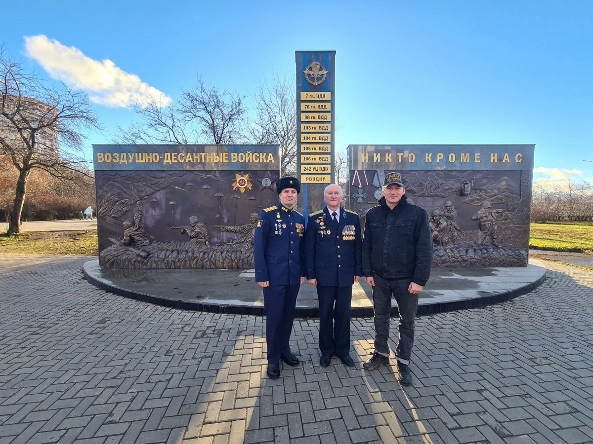 В официальной части сегодняшней программы значилось посещение монумента «Слава ВДВ». Наш гость узнал историю проектирования и создания монумента, а также бюста Василия Филипповича Маргелова, командующего Воздушно-десантными войсками в 1954-1959 и 1961-1979 годах, генерала армии (1967), Героя Советского Союза (1944), лауреата Государственной премии СССР (1975), кандидата военных наук (1968).