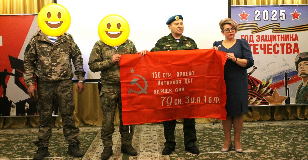 На память о встрече ветераны подарили детскому саду копию «Знамени Победы».
