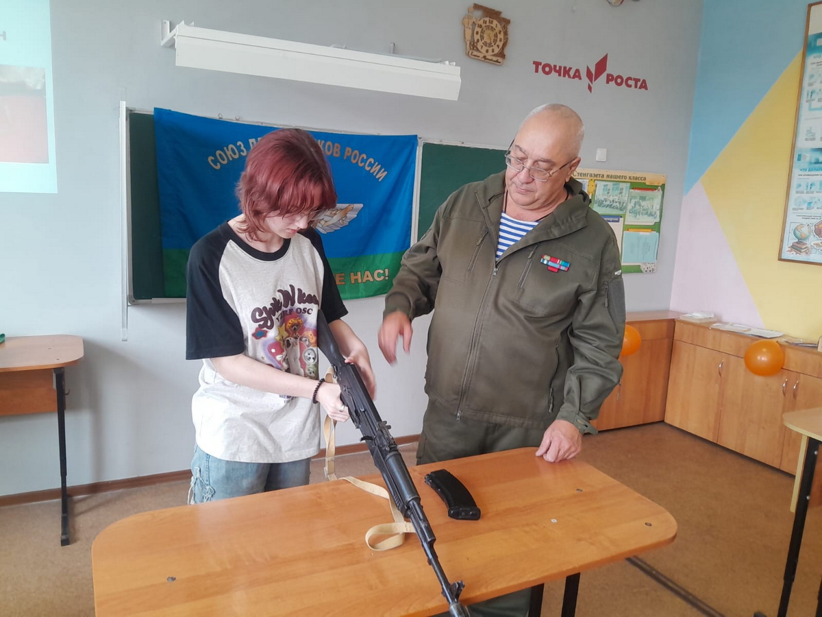 Орловская областная общественная организация «Союз десанта и специальных подразделений» Всероссийского Союза общественных объединений ветеранов десантных войск «Союз десантников России» имени Героя Советского Союза генерал – полковника Востротина В.А., при совместной договорённости с администрацией МБОУ- Корсаковской СОШ, провела занятие с учениками 9 класса, Корсаковской школы.