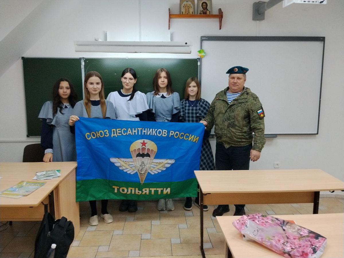 9 декабря 2025г. в Православной гимназии г.Тольятти Региональная общественная организация «Союз десантников и подразделений специального назначения Самарской области» провела урок мужества, посвящённый Дню героев Отечества, который традиционно ежегодно отмечается в одну и ту же дату — 9 декабря.