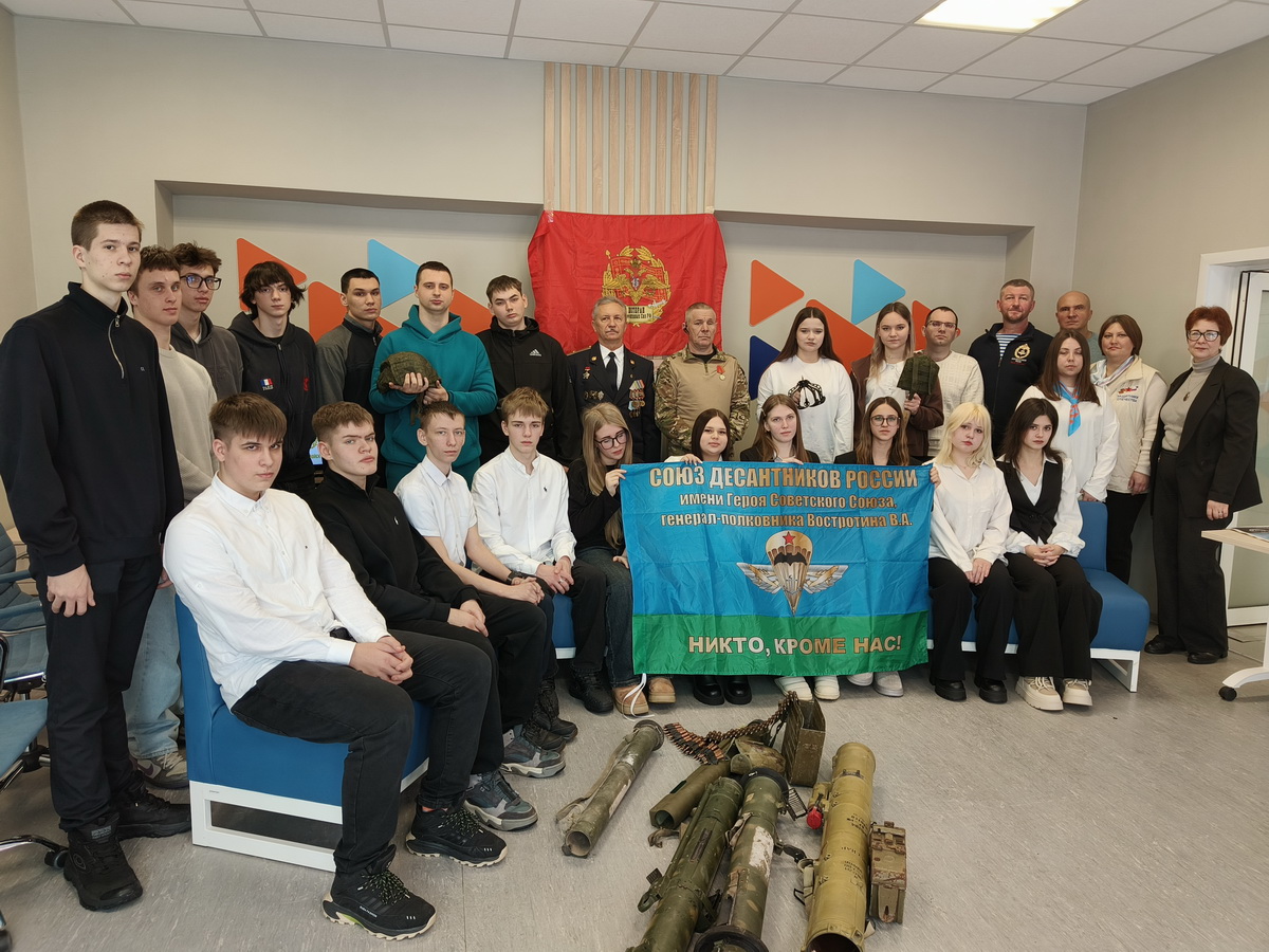 В преддверии Дня памяти воинов-интернационалистов и Дня защитников Отечества, на площадке кадрового центра г. Уварово и Уваровского муниципального округа Тамбовской региональной общественной организацией содействия ветеранам десантных войск (ТРООСВДВ) «СОЮЗ ДЕСАНТНИКОВ «был организован урок Мужества. Для учащихся 10 класса Нижнешибряйского филиала МБОУ Моисеево-Алабушской СОШ и студентов ТОГБПОУ «Уваровский политехнический колледж» выступили: Горлов Геннадий Васильевич, руководитель Тамбовской региональной общественной организации содействия ветеранам десантных войск (ТРООСВДВ) «СОЮЗ ДЕСАНТНИКОВ»; Коваль Вадим Юрьевич, майор запаса, ветеран Афганской и Чеченской войн, награждён медалями «За боевые заслуги» и Суворова; Митрофанов Олег Александрович, ветеран боевых действий в Чеченской Республике, кавалер ордена Мужества; Восковцев Константин Вельгельмович, ветеран боевых действий в СВО, награждён медалью Жукова. В ходе урока Мужества ребятам рассказали о героях Тамбовской земли. Ветераны подготовили для ребят экспонаты вооружения и экспозицию книг, иллюстрирующих события афганской войны, военных конфликтов в Чеченской Республике и зоне СВО, продемонстрированы видеоклипы о Герое Советского Союза, генерал — полковнике В.А. Востротине и о Герое России, гвардии полковнике А.В. Кондрашкине, нашем земляке, уроженце п.г.т Первомайский. Ребята с большим интересом слушали выступающих и задавали вопросы. Такие мероприятия способствуют связи поколений, проявлению дани памяти подвигам наших предков.