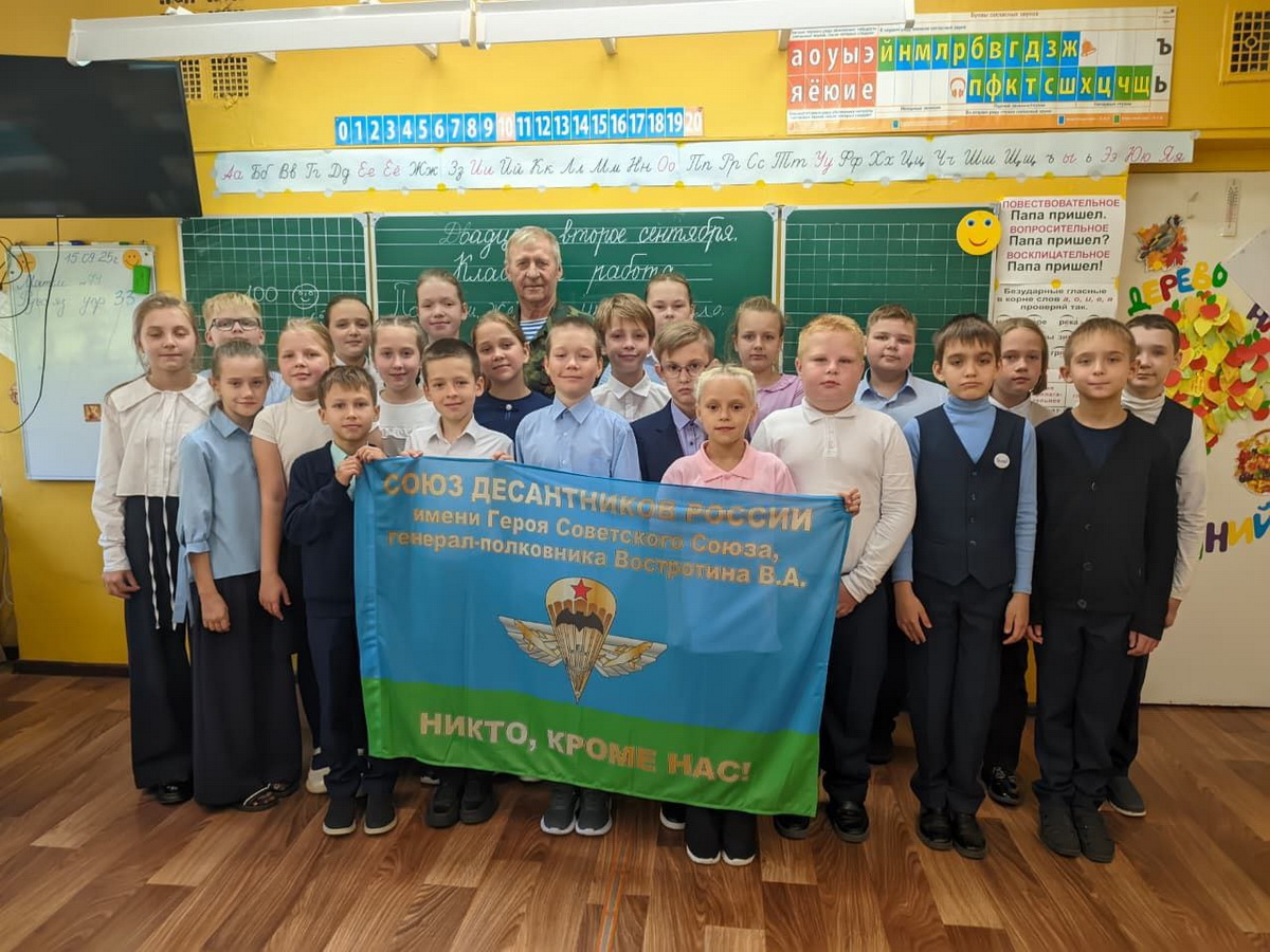 3 октября в День воинской Славы — разгрома немецко-фашистских войск на Кавказе представитель Ульяновского регионального отделения общественной организации «Союз десантников» ветеран боевых действий гвардии подполковник в отставке Дурманов Валерий Алексеевич провёл урок мужества в 4 «А» классе средней школы № 17 города Ульяновска.