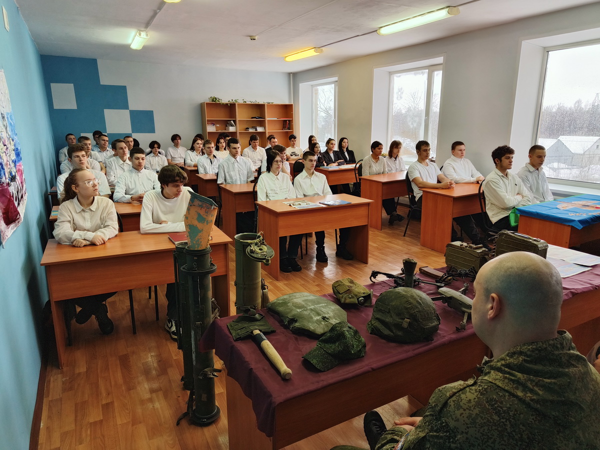 16 февраля, в День Тамбовских Героев члены Тамбовской региональной общественной организации содействия ветеранам десантных войск (ТРООСВДВ) «СОЮЗ ДЕСАНТНИКОВ»: руководитель Горлов Геннадий Васильевич; ветеран боевых действий в Чеченской Республике, руководитель волонтерской группы » РУССКИЙ ZОВ» Барсуков Михаил Алексеевич , ветеран боевых действий СВО, кавалер ордена Мужества Шмелёв Юрий Юрьевич, ветеран боевых действий СВО, награждённый медалью «За отвагу» Дремченко Александр Федорович провели урок Мужества в ТОГБПОУ «Индустриально-промышленный техникум» города Рассказово для двух групп студентов, 38 человек.