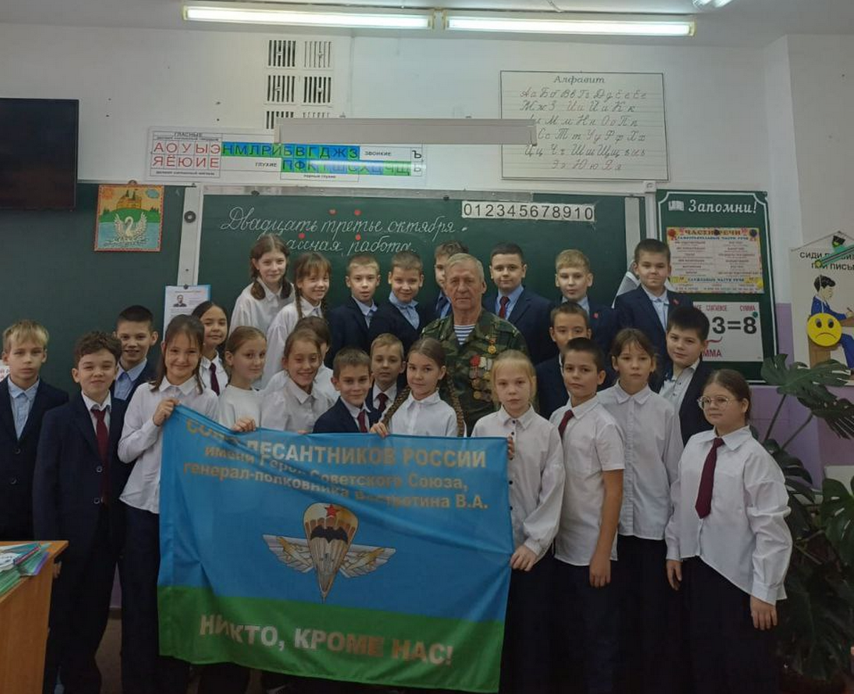 Урок закончился общей фотографией с ветераном-десантником.