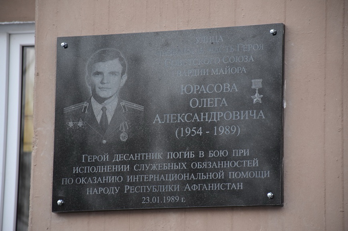 Напомним, мемориальная доска с целью увековечения памяти Героя Советского Союза гвардии майора Юрасова Олега Александровича изготовлена и установлена «Союзом Десантников России» под руководством Лидера Всероссийского Союза Общественных Объединений Ветеранов Десантных Войск Героя Советского Союза генерал-полковника Востротина Валерия Александровича при активном участии Председателя Центрального Правления «Союза Десантников России» полковника запаса Юрьева Валерия Николаевича и при содействии Костромской Областной общественной организации «Ветераны Десантных Войск» 23 января 2022 года на фасаде дома № 1 по улице Олега Юрасова в городе Костроме.