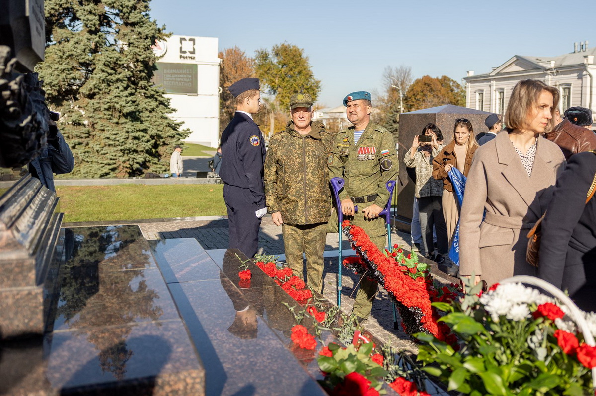 Воспитанники кадетских классов возложили венок и корзину цветов к стеле «Воинской Славы» и выставили почётный караул. Глава города, депутаты Городской думы, ветераны общественных организаций, участники СВО отдали дань памяти погибшим таганрожцам в Великой Отечественной войне и возложили цветы к подножию стелы .