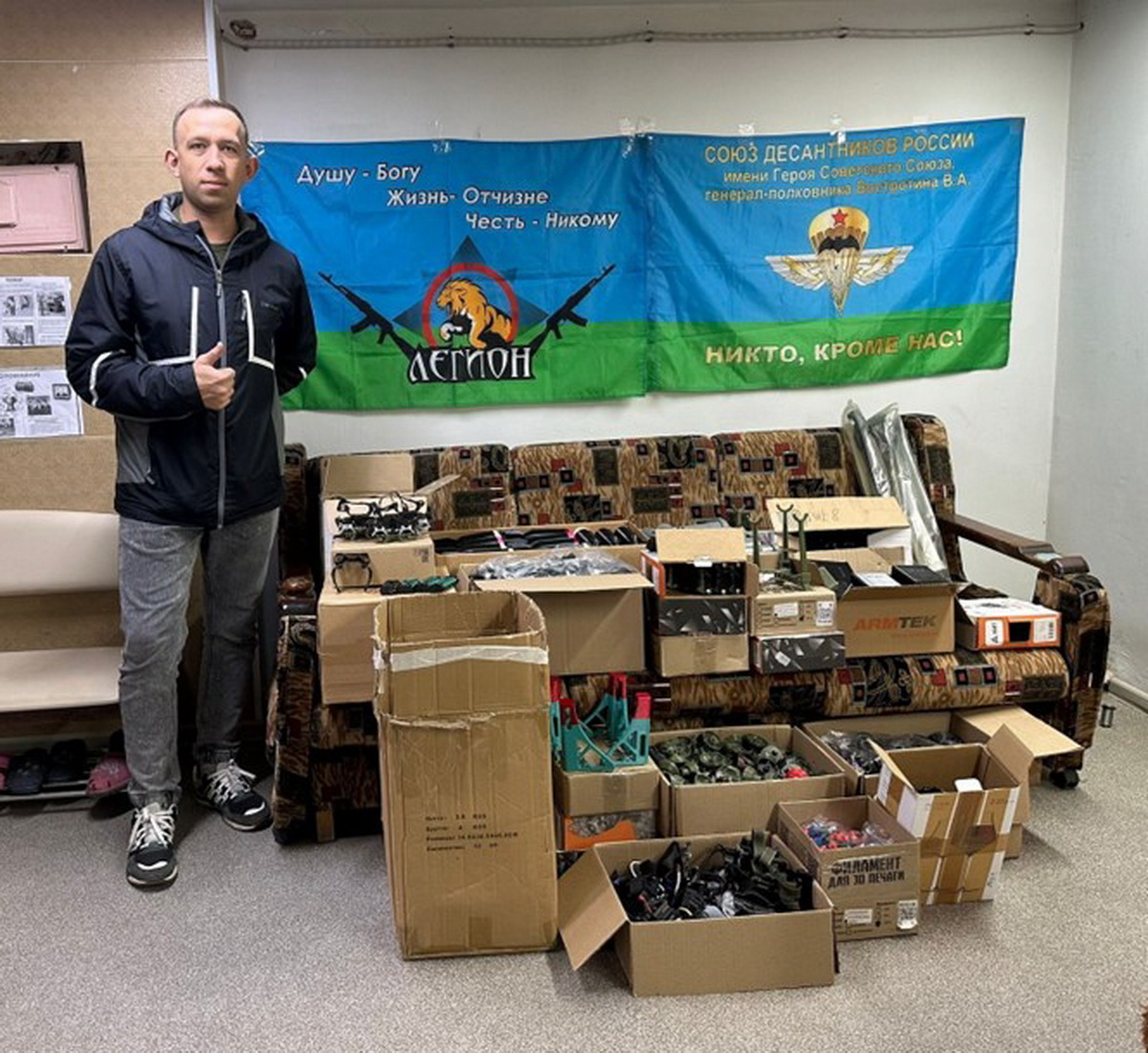 В пятницу 10 октября ушел в направлении проведения специальной военной операции по «экстренной» заявке командиров частей гуманитарный груз с изделиями военного назначения, изготовленными на производственных площадях ВПК «Легион». Он уже получен адресатами и «запущен в работу» по назначению. Как и прежде, наши военнослужащие (операторы беспилотных летательных аппаратов) отмечают высокое качество поставленной в их распоряжение военной продукции от ВПК «Легион».